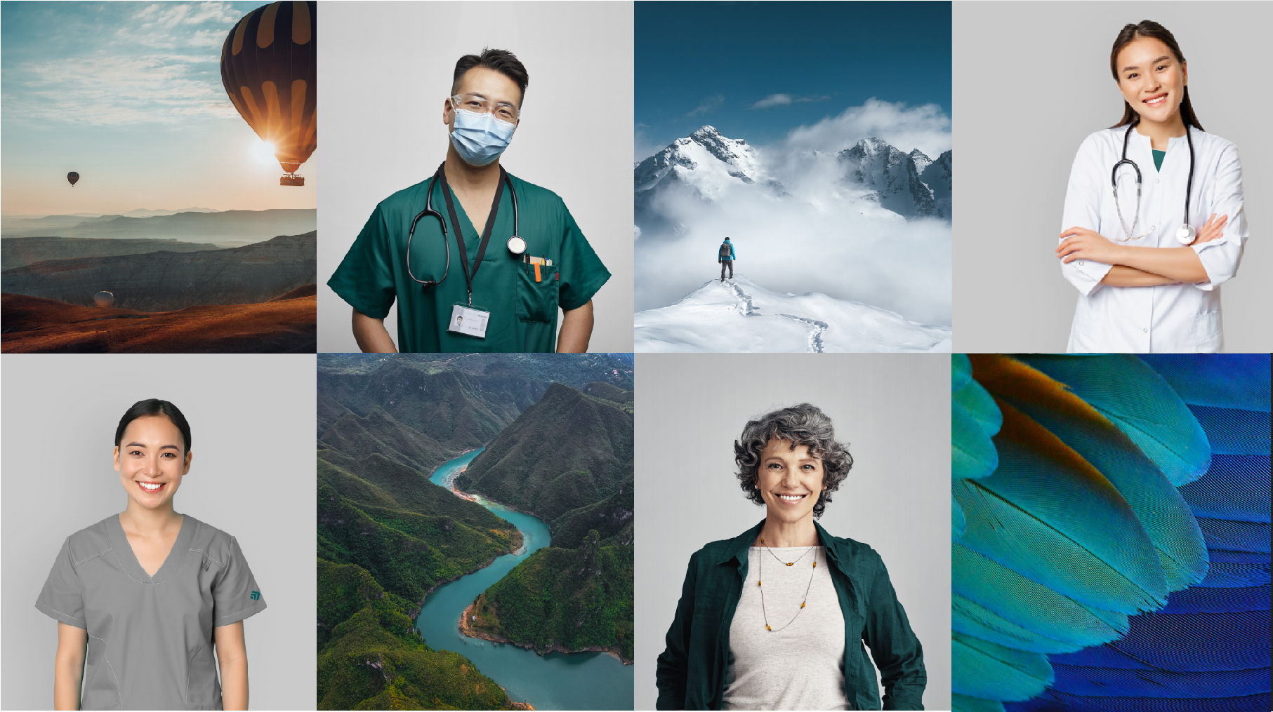 在色彩方面,我們選擇具有健康屬性和內(nèi)斂的綠色作為品牌顏色,我們把它定義為“遠(yuǎn)山綠”,它是來(lái)自蒼翠遙遠(yuǎn)山峰的顏色,自然和親切,對(duì)患者的眼睛具有友好的舒適度。同時(shí)我們也搭配了一系列舒適自然、低飽和的顏色以適應(yīng)不同接觸點(diǎn)的落地,讓整體更加豐富。