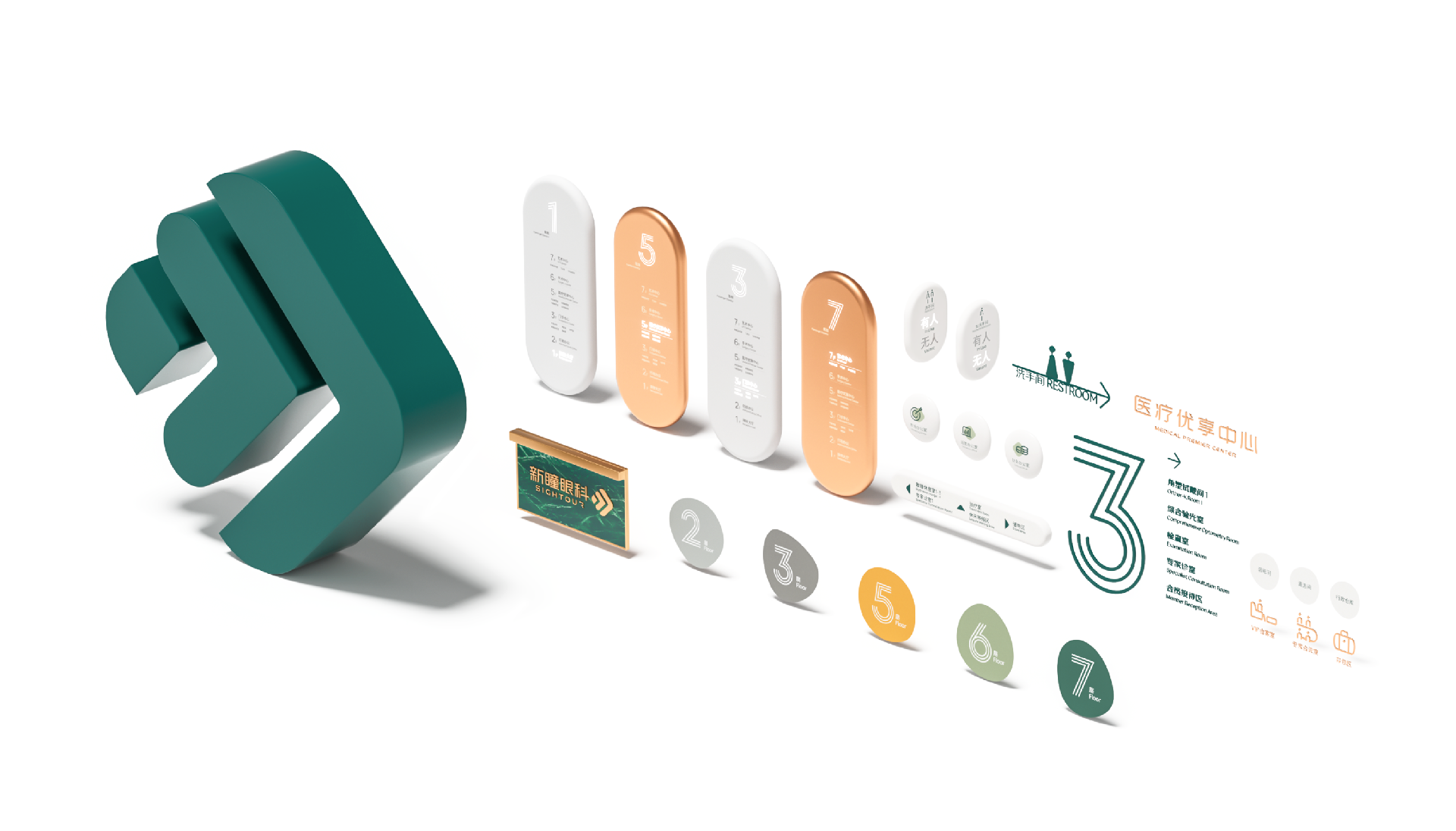 我們相對(duì)克制的把層層遞進(jìn)的科技、醫(yī)療和生活的三層關(guān)系放到了每層樓的樓號(hào)數(shù)字上隱晦的表達(dá);在每個(gè)房間的門牌上使用鵝卵石狀來(lái)強(qiáng)調(diào)呵護(hù)和治愈,減少患者焦慮;把醫(yī)療區(qū)和VIP體驗(yàn)區(qū)用材質(zhì)來(lái)迎合整體環(huán)境;把代表平臺(tái)的logo外輪廓融合進(jìn)整體icon,在員工區(qū)的icon開發(fā)上細(xì)微的增強(qiáng)了團(tuán)隊(duì)活力;在過(guò)道樓梯的電梯處使用了底紋元素;在每個(gè)樓層的前臺(tái)處按照l(shuí)ogo字體重新對(duì)中英文進(jìn)行統(tǒng)一設(shè)計(jì);單獨(dú)把logo圖形作為前臺(tái)的點(diǎn)睛之筆,所有的細(xì)節(jié)全部貫穿核心的創(chuàng)意元素,指向使命和初心的創(chuàng)意機(jī)會(huì)。