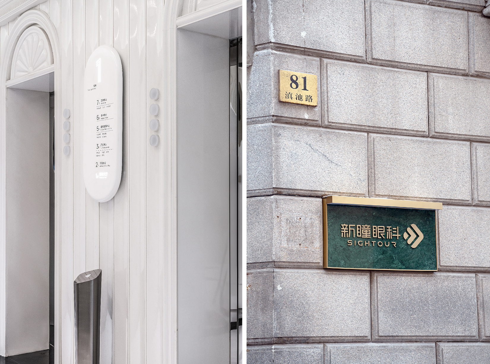 在導(dǎo)視設(shè)計(jì)上,為了使患者從空間環(huán)境各個(gè)觸點(diǎn)上感受新瞳的醫(yī)療初心和價(jià)值傳遞,坐落于上海外灘的歷史保護(hù)建筑滇池路81號(hào),就是新的創(chuàng)意挑戰(zhàn)地。為了讓導(dǎo)視在一個(gè)法式空間中不突兀的傳遞溫暖,多更品牌和新瞳團(tuán)隊(duì)在討論過(guò)后依然選擇了品質(zhì)和內(nèi)斂的方向作為導(dǎo)視的主旨思路,它需要在環(huán)境中充分的融合,不突兀不張揚(yáng),圓潤(rùn)親和而又大方的呈現(xiàn)一致性,同時(shí)兼顧每層樓不同的調(diào)性,比如醫(yī)療區(qū)要足夠?qū)I(yè),員工區(qū)要相對(duì)活力。